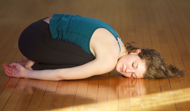 Corinne Andrews resting in baddhakonasana.